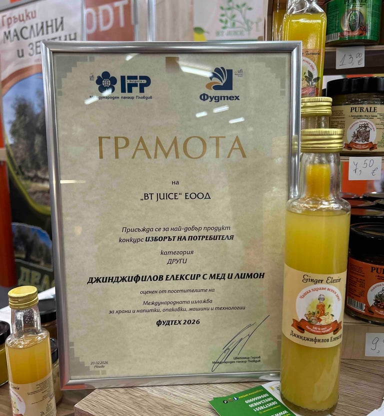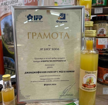 Споделяме с вас огромната си радост! На тазгодишното изложение Foodtech 2026 в Пловдив, нашият семеен бизнес „BT JUICE“ получи най-ценната награда за нас – Вашето доверие!